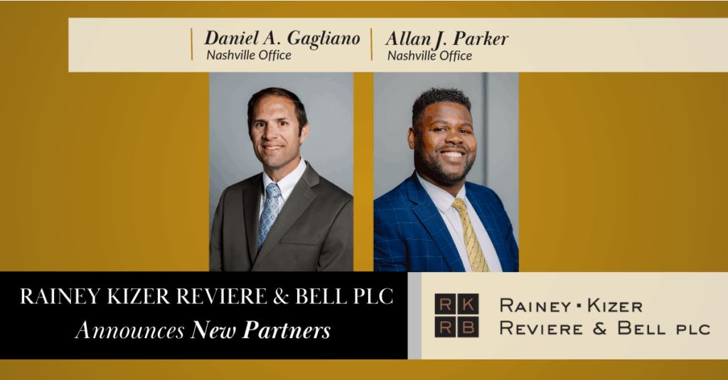Rainey, Kizer, Reviere & Bell, PLC is pleased to announce that Daniel Gagliano (Nashville) and Allan Parker (Nashville) have been named as Members of the Firm.